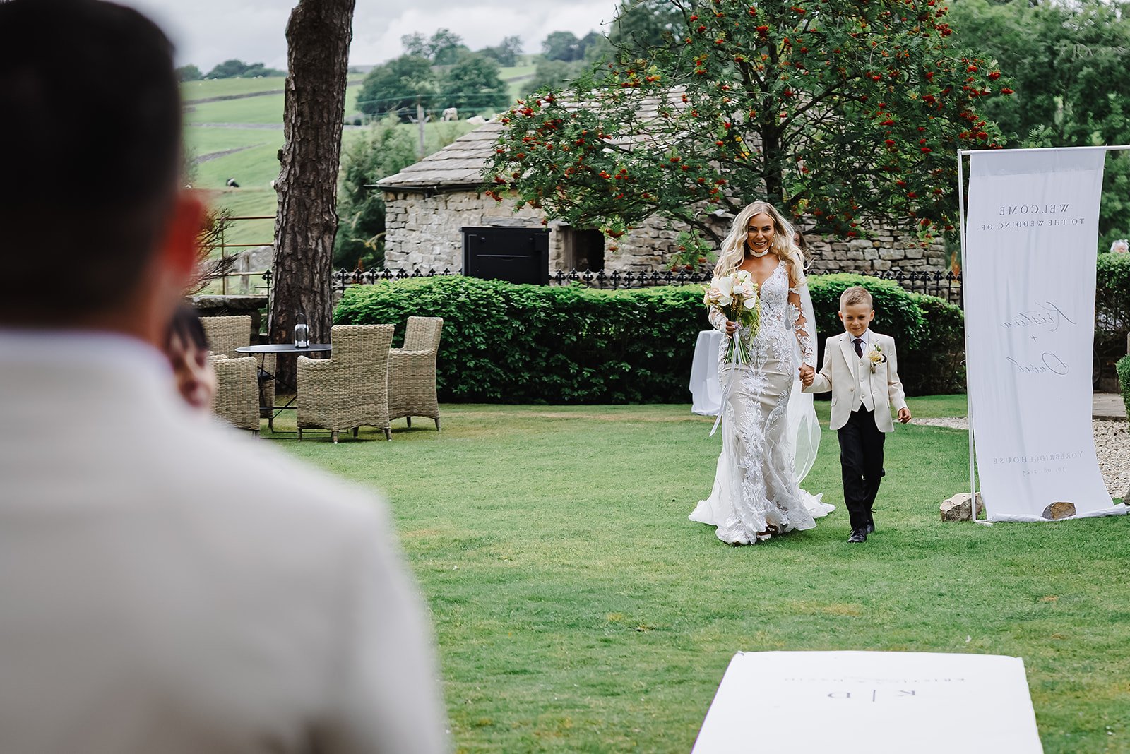 The ceremony took place in Yorebridge House beautiful garden. Kristina’s entrance was nothing short of radiant, and the look on David’s face said it all.