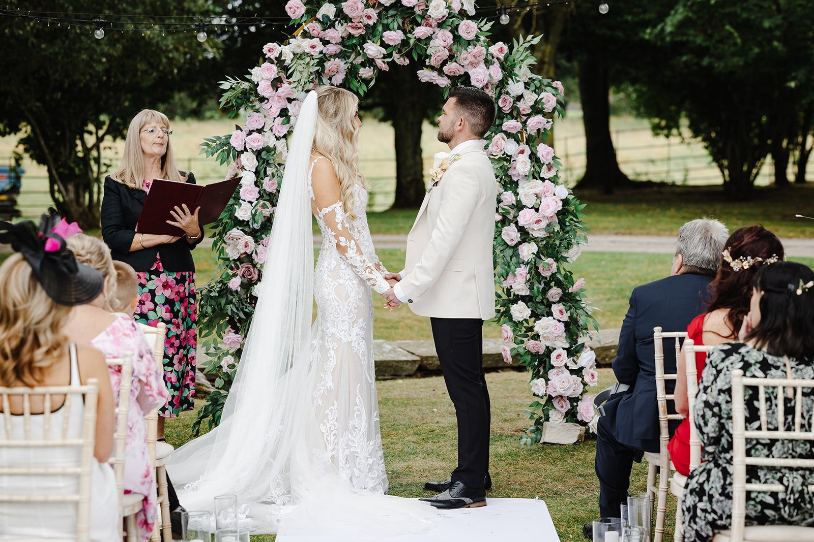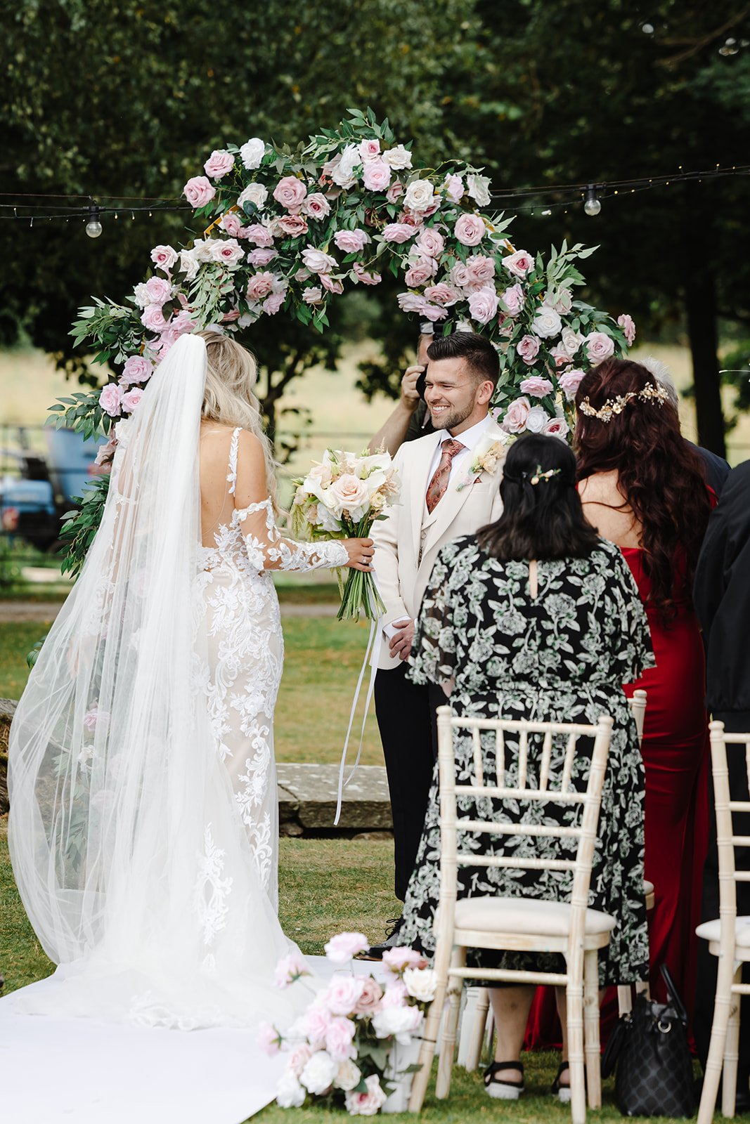 The garden was filled with love, laughter, and a few tears as they exchanged their vows surrounded by close family and friends. It was a ceremony that perfectly reflected who they are — warm, genuine, and full of joy.