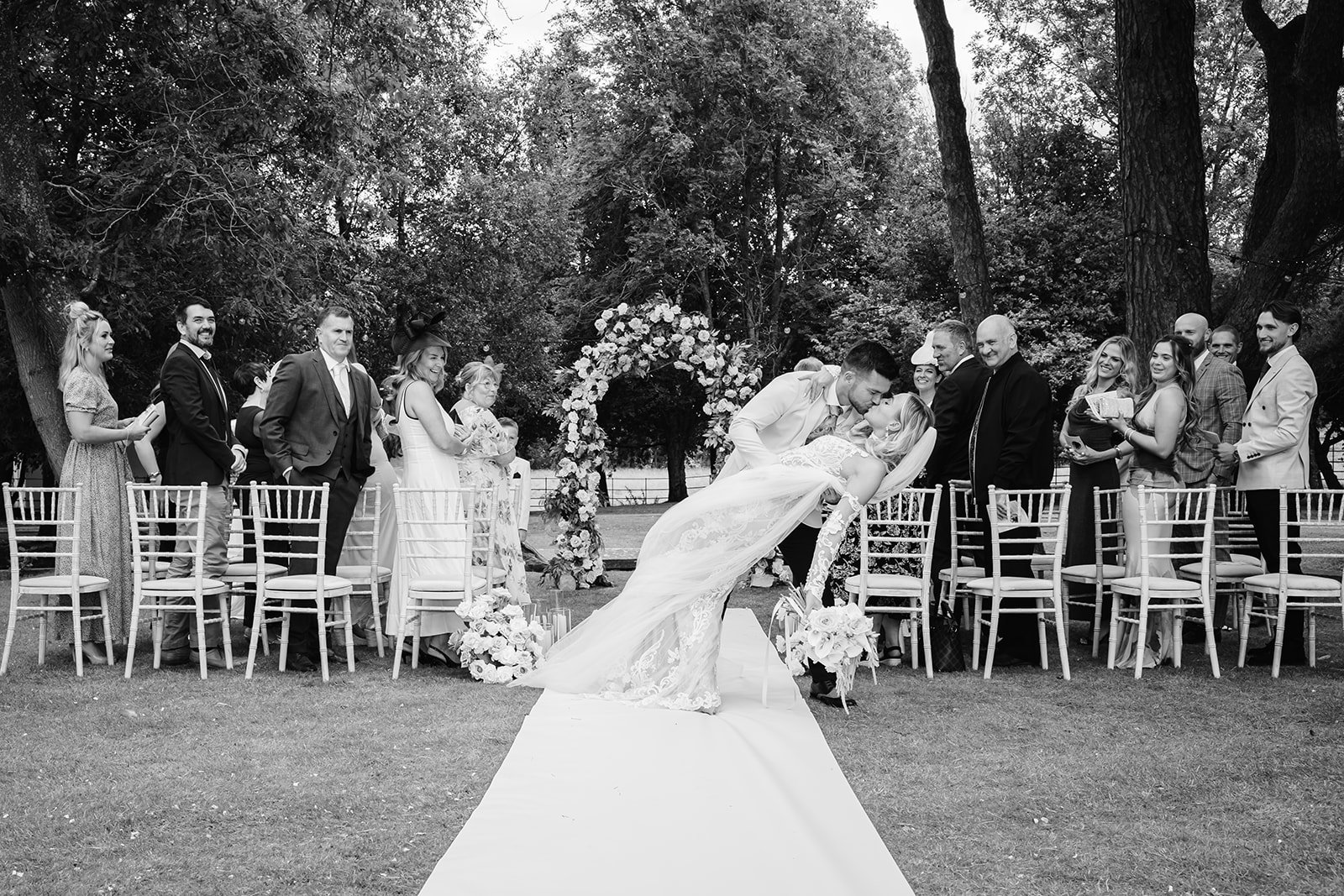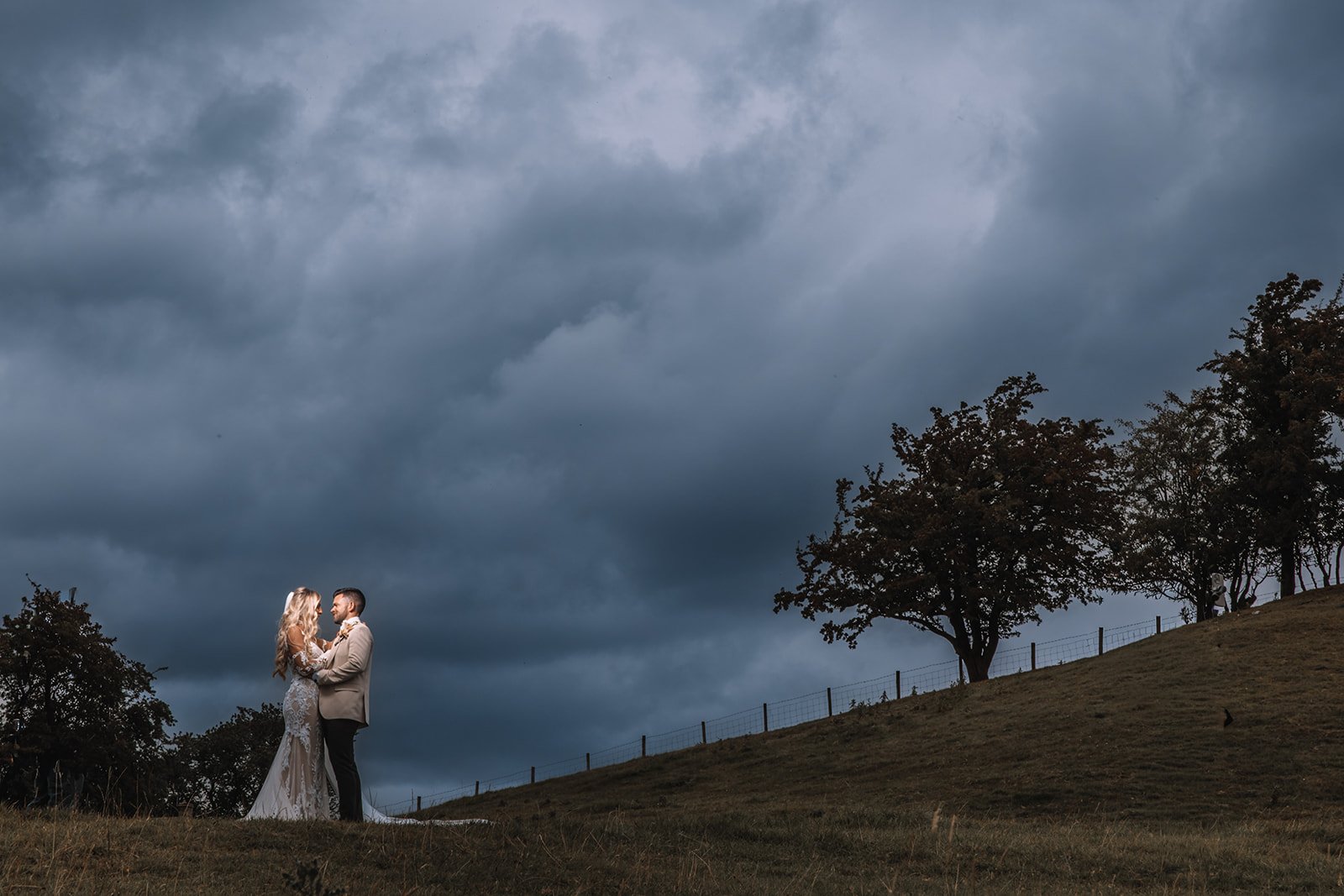 After the confetti and hugs, guests enjoyed drinks on the lawn, with views stretching across the Yorkshire Dales. The weather couldn’t have been better — soft sunlight, a gentle breeze, and that unmistakable August glow, the rain held off just long enough for us to finish our couples photos.